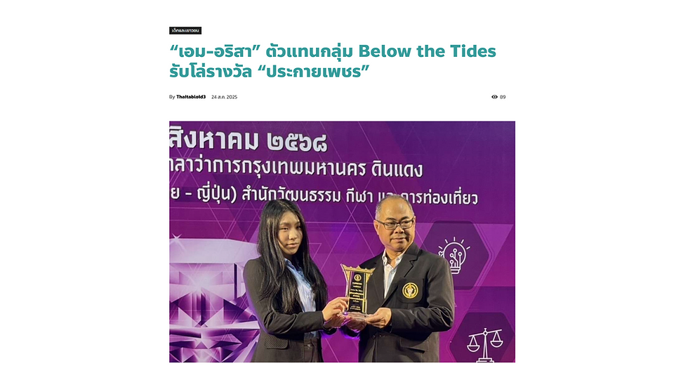 “น้องเอม-อริสา ทองแตง” เป็นตัวแทนกลุ่ม “Below the Tides” รับมอบรางวัล “ประกายเพชร” ขึ้นแท่นเยาวชนต้นแบบผู้สร้างแรงบันดาลใจด้านสิ่งแวดล้อม